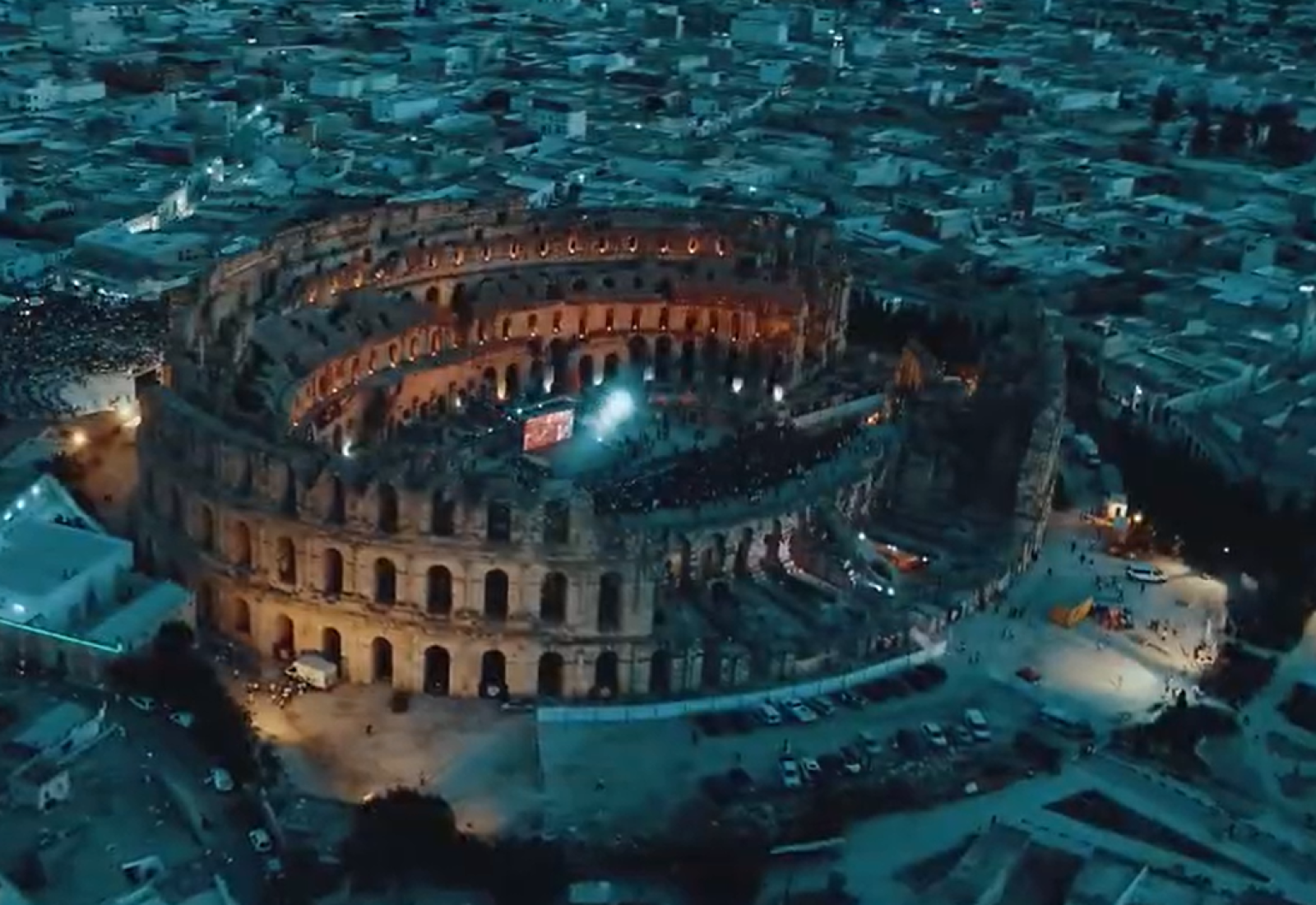 Un bidonville, un petit village au bord du désert, une ville ouvrière oubliée, et un immense Colisée romain fermé aux manifestations publiques. -